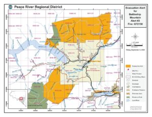 Because of the potential danger to life and health, the Peace River Regional District has issued an expanded Evacuation Alert for the following areas: