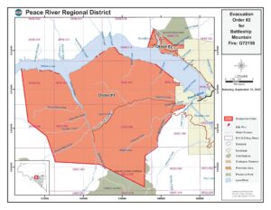 An expanded Evacuation Order has been issued by the Peace River Regional District due to immediate danger to life and safety caused by a wildfire. Members of the RCMP and other applicable agencies will be expediting this action.